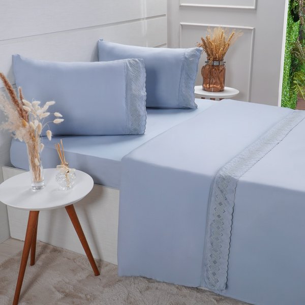 O grande diferencial está nos detalhes em bordado inglês, que valorizam a peça e deixam a cama com aparência mais refinada, delicada e aconchegante.