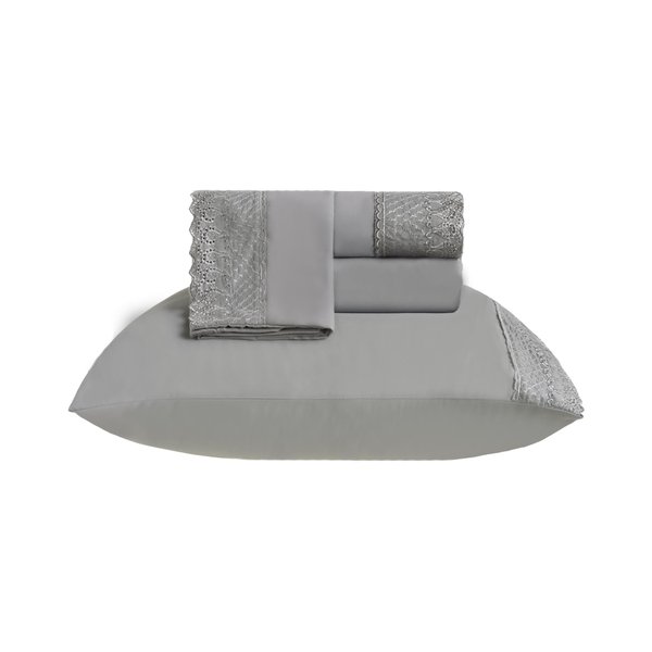 Sim. O acabamento em bordado inglês valoriza o visual do jogo de cama e traz um toque mais sofisticado.