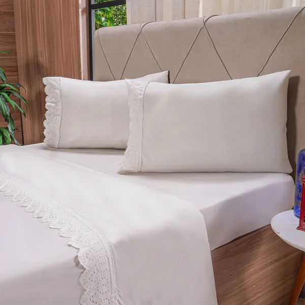 Jogo de Cama Queen Bordado Inglês Micropercal 200 Fios Bene Casa é perfeito para quem deseja valorizar o quarto com mais conforto, delicadeza e aparência sofisticada.