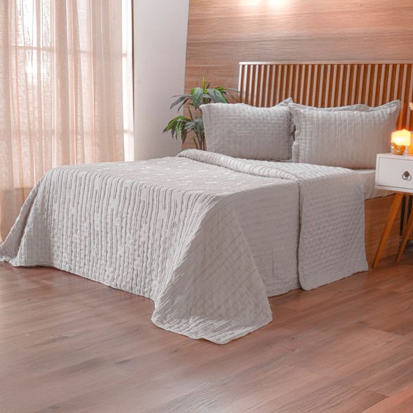 O KIT Cobre Leito Essence Casal Tessi foi desenvolvido para quem deseja unir elegância, conforto e praticidade na decoração do quarto. Com design moderno e acabamento em tecido Jacquard com relevo, proporciona um visual sofisticado que valoriza a cama.