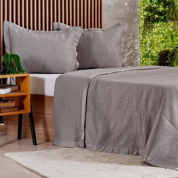 Além do visual premium, o Kit Cobre Leito proporciona conforto térmico equilibrado, sendo ideal para o uso diário em todas as estações do ano.