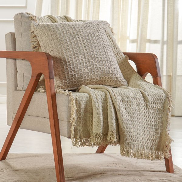 Confeccionada em 100% algodão, possui textura waffle que proporciona toque agradável, além de um visual rústico e elegante, valorizando diferentes estilos de decoração.